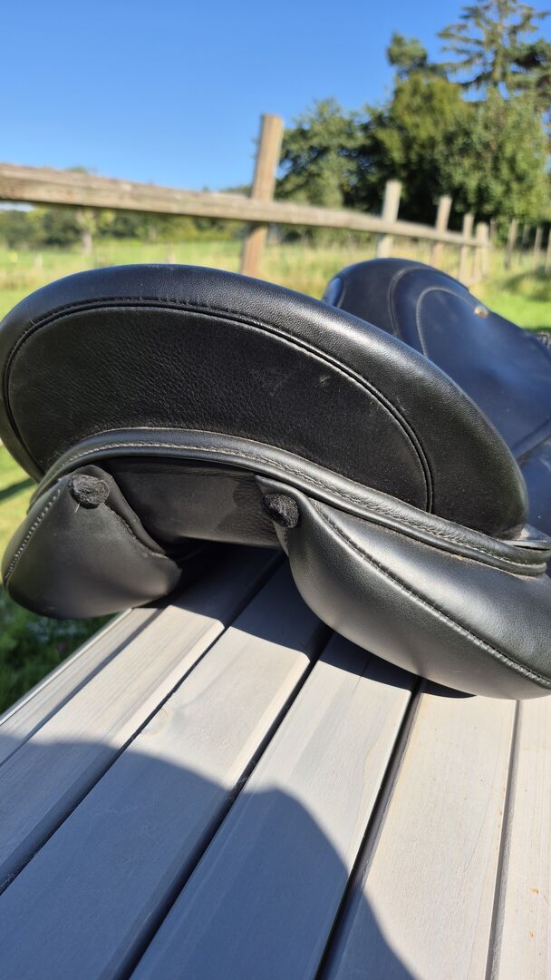 Kentauer dressuurzadel 16,5 inch Ithaka - Ik verkoop een mint condition Kentauer dressuurzadel, model Ithaka, zitmaat 16,5 inch met grote klittenband flap. Kamerbreedte momenteel 29 cm. De slokdarmplaat kan door de zadelmaker veranderd worden. Oorspronkelijk was de slokdarmbreedte 2, dus 30 cm breed. Nieuw gekocht op 1 januari 2025, maar past mijn paard helaas niet. 5 jaar garantie aanwezig. Slechts een paar keer gebruikt.