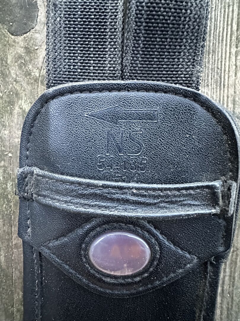 Het is goed onderhouden en functioneel. De vulling maakt het comfortabel om te dragen en de gesp houdt betrouwbaar.
