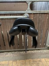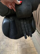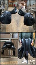 Kentaur Onyx springzadel 17,5 - Ik verkoop mijn 1,5 jaar oude springzadel met medium diepe zit en medium hoge pommels, vastgemaakt met klittenband. Franse wollen panelen met wig zorgen voor een goede pasvorm. Dankzij de verstelbare knierollen en kuitblokken is een individuele aanpassing voor elke ruiter mogelijk. Het zadel is altijd met zorg behandeld en regelmatig schoongemaakt en ingevet.