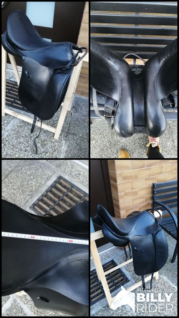 Kentaur Penelopa dressuurzadel 17,5 inch - Kentaur Penelopa dressuurzadel 17,5 inch vers nagekeken en opgevuld door de zadelmaker. Koud verstelbaar/aanpasbaar door elke zadelmaker. In goede staat volgens foto's.