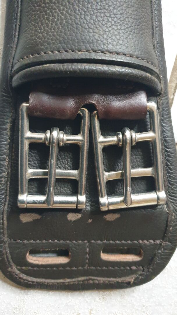 Het leer is een beetje afgeschuurd aan de uiteinden van de gespen. 1,5 jaar niet gebruikt. Maar heeft geen invloed. Prijs zou incl. verzendkosten zijn.