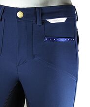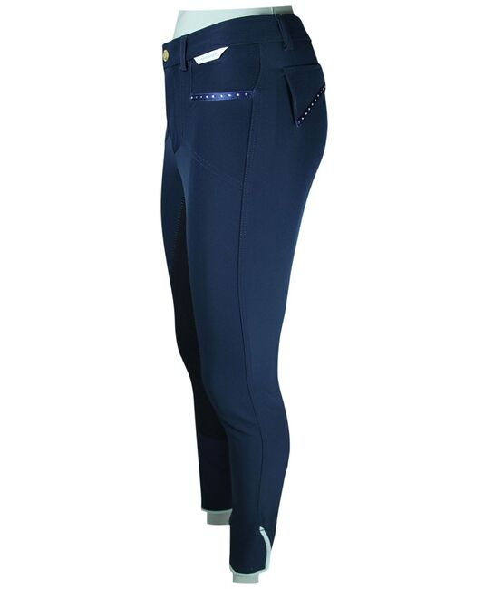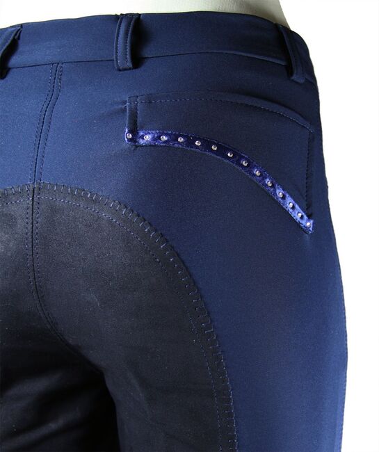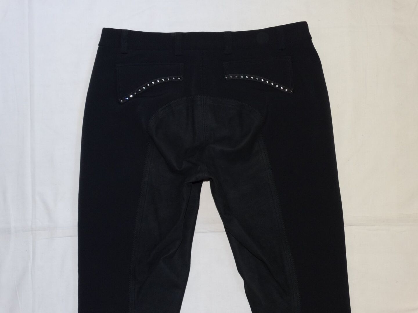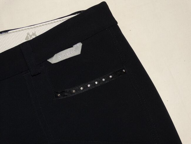 - Damesrijbroek van softshell met imitatiesuède/kunstleren bies - Ademend en huidvriendelijk - water- en vuilafstotend - Schoeller WB-400* - Denim zakken en sierzakken op de achterkant met strass-versiering (helaas ontbreken er twee linksvoor) - Tailleband met riemlussen - Samenstelling: 49% polyester, 30% polyamide, 12% polyurethaan, 8% elastaan - Machinewasbaar op 40 graden en niet geschikt voor de droger - Geen wasverzachter gebruiken (vanwege softshell) Nieuwprijs was meer dan 200€.