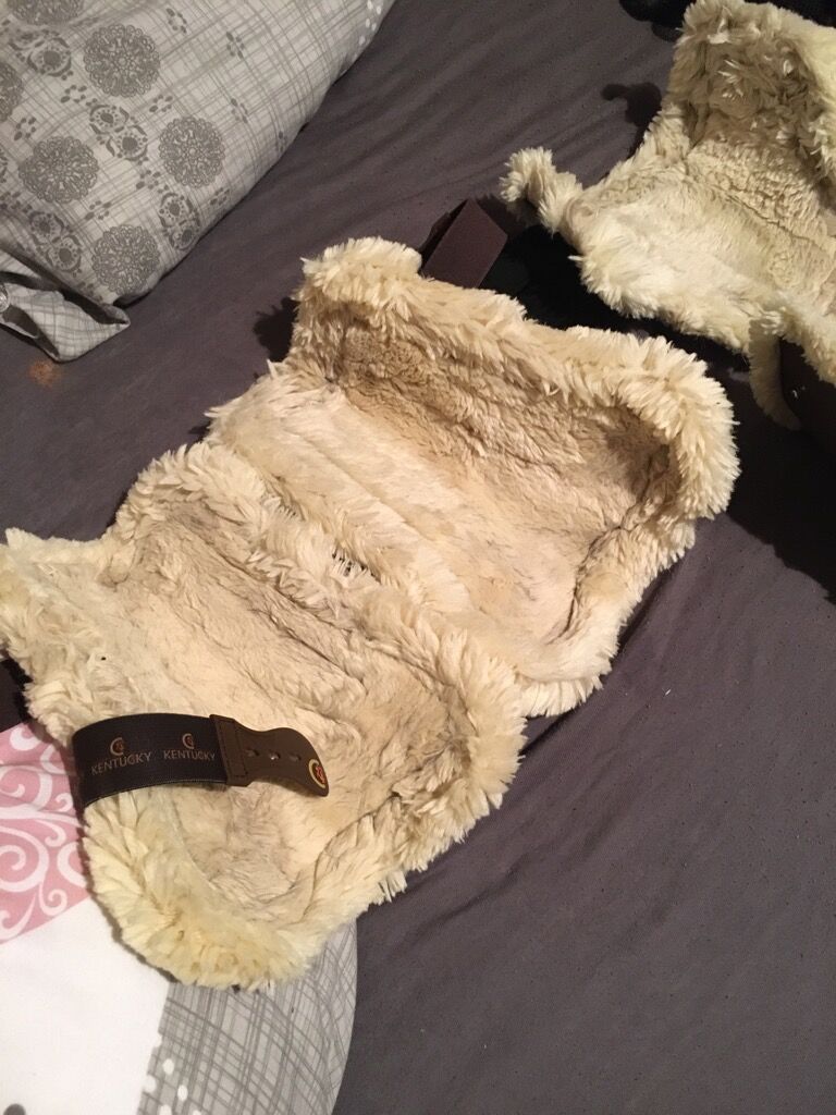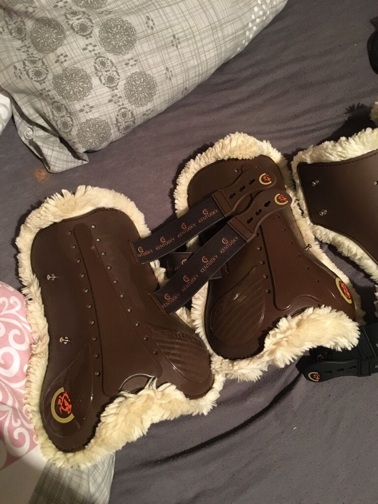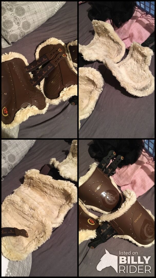 Kentucky Lamsvacht Gaiters + Steekkapjes bruin L - Weinig gebruikte Kentucky lamsleren beenkappen en laarzen in bruin maat L Gratis verzending Prijs VHB Zal nog steeds gewassen worden