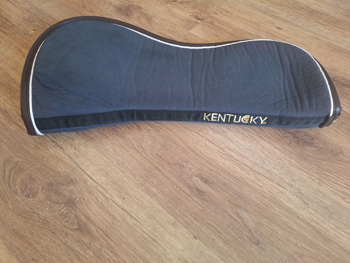 Kentucky zadeldek - Ik verkoop mijn Kentucky zadeldek in donkerblauw met een bruine leren rand. Het is in zeer goede staat en heeft geen gebreken. De oorspronkelijke prijs was 110€.