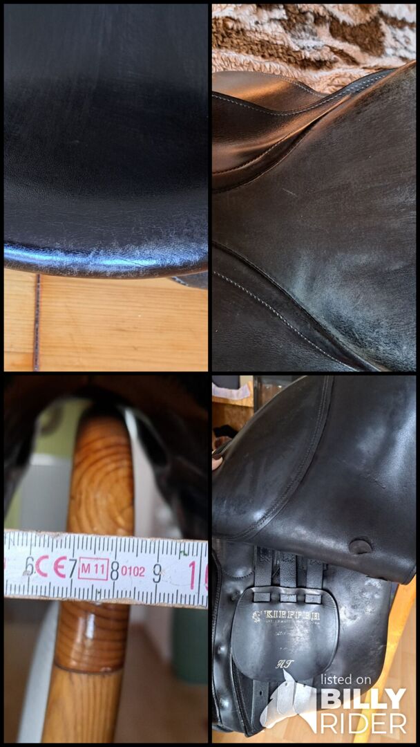 Kiefer Eventingzadel 17,5 inch - Ik verkoop een gebruikt eventingzadel van Kiefer. De leeftijd is mij onbekend. Het is door mij een keer zwart gemaakt. Het vertoont normale gebruikssporen.