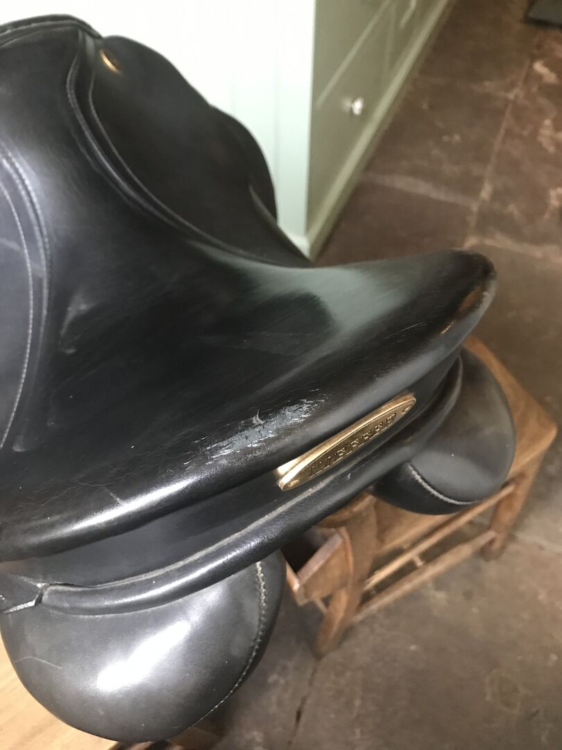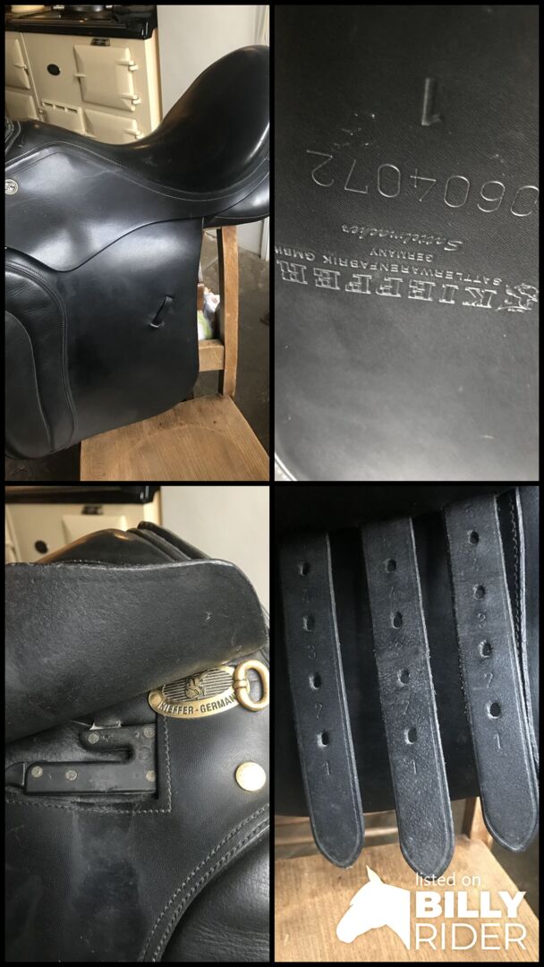 Hardly used Kieffer dressage saddle, medium width, specification details in the photos. Slight mark on the pommel and small scuff on the cantle but other than that it in excellent condition with not very much wear at all. Short girth straps