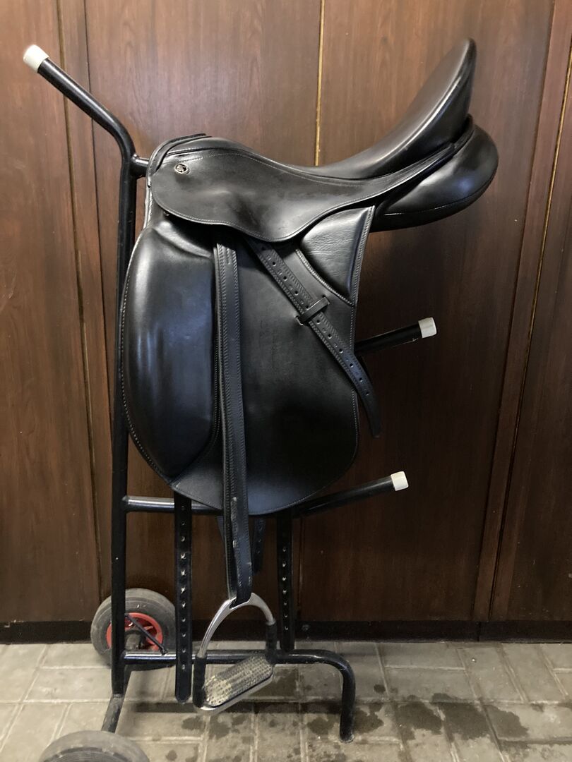 Het zadel is met zorg behandeld, regelmatig gecontroleerd, voor het laatst opgevuld in 2022 en eind 2024 gebruikt. Het zadel heeft een exclusieve boom die koud kan worden aangepast.