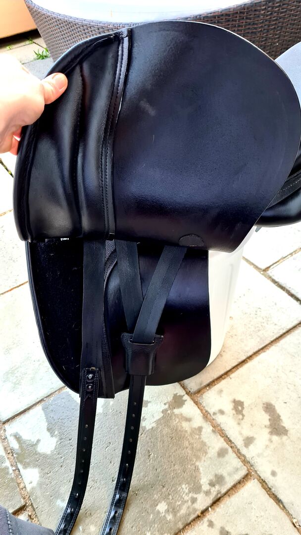 Kieffer Dressuurzadel Pony 16' - Ik verkoop mijn dressuurzadel van Kieffer. Zie de beschrijving op de laatste foto. Ik heb het ongeveer 1 jaar gebruikt, helaas kan het niet meer aangepast worden zodat het mijn pony nog zou passen. Het zadel is in topconditie, de vulling is lekker zacht en er is voldoende ruimte voor de schoft. Op dit moment is de slokdarm wijd, maar hij zal niet verder gaan. Natuurlijk kan het zadel weer strakker worden gemaakt.