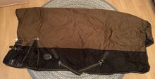 Te koop al oudere Kieffer Mammut 250 deken. Is jaren geleden fris gewassen en waterdicht gemaakt en sindsdien droog opgeborgen in een tas. Hij is weinig op het paard geweest, daarom nog in zeer goede staat, alleen de naden van het klittenband voor op de borst laten los en er zit een lichte verkleuring op een van de boekriemen (zie foto's).