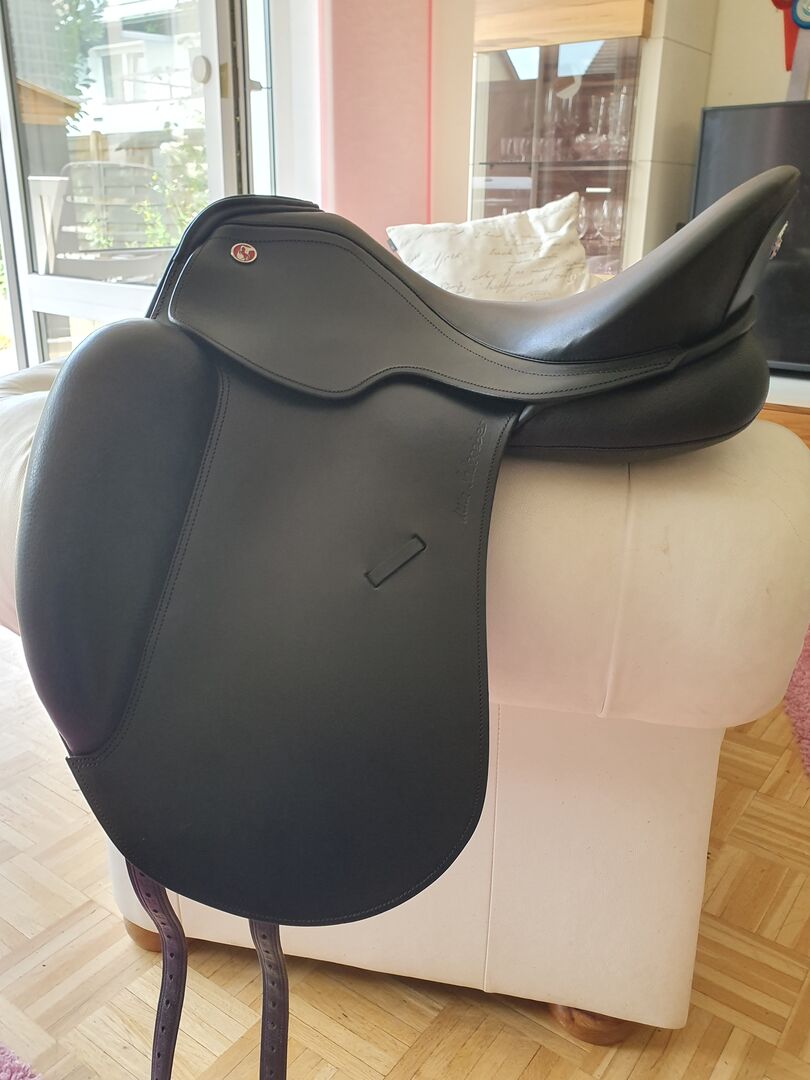 2x gebruikt voordat het paard met pensioen ging. Geen defecten of tekenen van slijtage. Zadel als nieuw! Normale slokdarm breedte, 17,5". Alleen af te halen in Bochum. Geen teruggave, als privé verkoop. Originele prijs 2240€.