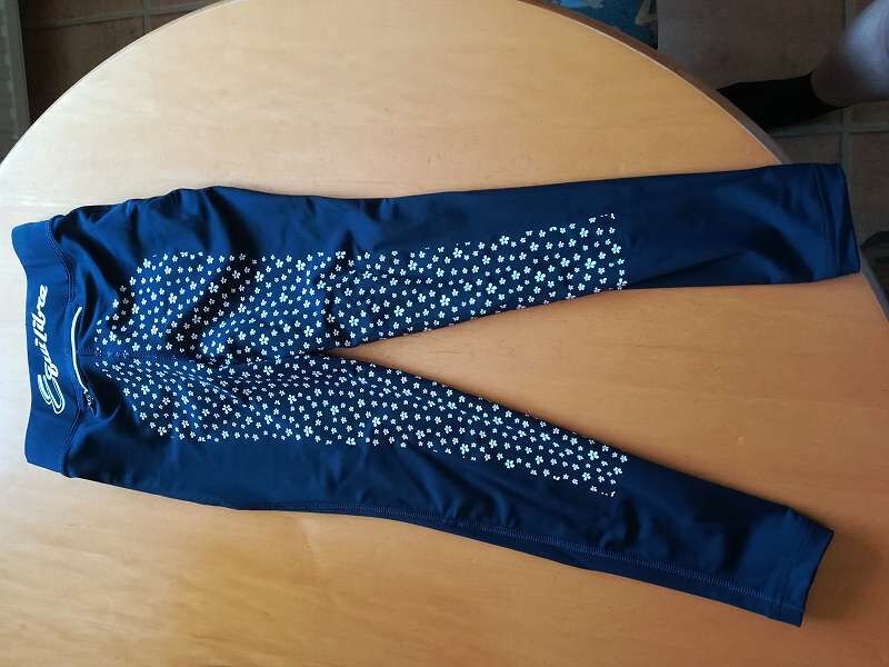 Kinder rijlegging 128 - Kinder zomer rij legging in zeer goede staat, donkerblauw, grip in wit met bloemmotief.