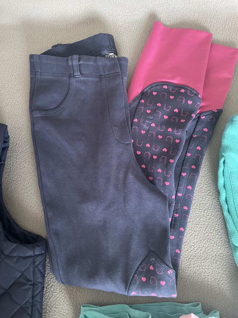 Kinder ruiterkleding set gr 152 - Bieden een geweldige kinder rijset in maat 152. Deze set bestaat uit. - Vest - Fleece jas - 3 T-shirts. (Helaas kleine vlekken, te zien op de foto's). - 1 broek.