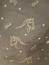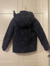 Kinder winter softshell jas maat 134/140 - Warme softshell jas voor kinderen met reflecterende all-over print van paarden, stippen en logobelettering. Waterafstotend, winddicht en ademend. Hoge kraag met capuchon die aan de achterkant kan worden vastgemaakt met een drukknoop, onderverdeelde 2-weg ritssluiting met kinbeschermer, 2 klepzakken met drukknoop en geïntegreerde zijsplitzakken aan de voorkant.