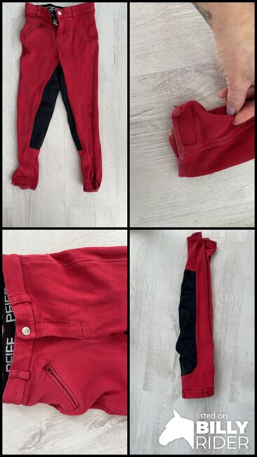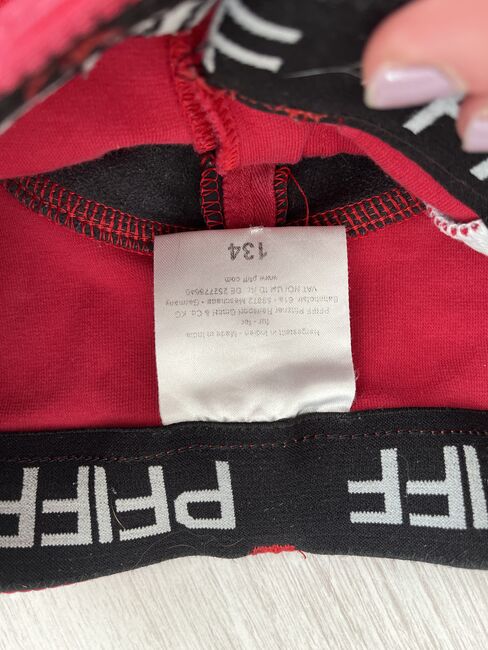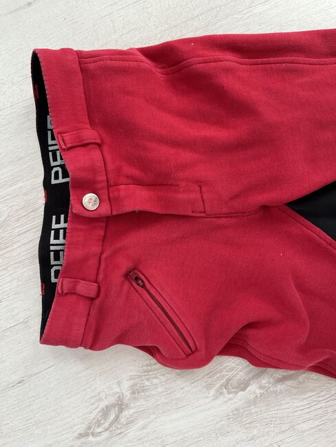 Kinderbroek van Pfiff - Goed bewaard en zelden gedragen. Deze geweldige rode kinderrijbroek heeft klittenband aan de onderkant en 1 zak met ritssluiting, zie foto's. De maat is 134