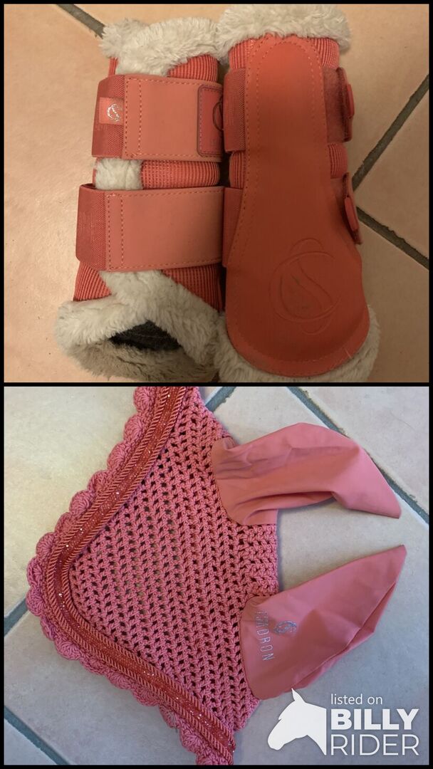 Ik verkoop slobkousen in S (prijs: 30 Euro) en vliegenmuts in pony (prijs: 15 Euro).