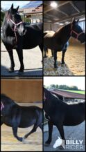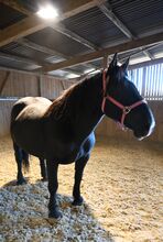 Kleine Noriker zwarte merrie - Miriam is een 156cm lange 12-jarige Noriker zwarte merrie. Ze woont bij mij in een open stal. De eigenaar moet om privé redenen afscheid van haar nemen. Miriam is bereden in alle 3 de gangen zowel in de bak als in de rijbak, ze loopt ook bij ons op de manege. Miriam is niet schuw en zekervoetig. Ze is ook gereden in 2 tuigen, Miriam is rijklaar en onbevreesd, ze gaat goed in de trailer en is braaf bij de hoefsmid. Ze is aan de voorkant beslagen. Miriam is gevaccineerd, regelmatig ontwormd en PSSM1 vrij. Ze is ingeschreven in het stamboek als hengstenmoeder op 7.64 en heeft meerdere veulens gehad. Ze staat in het midden van het veld. Ze is gewend aan landbouwmachines en andere boerderijdieren zoals runderen, ezels, alpaca's, kippen, honden en katten. Miriam houdt van kinderen. Ze heeft een goede GGA.
