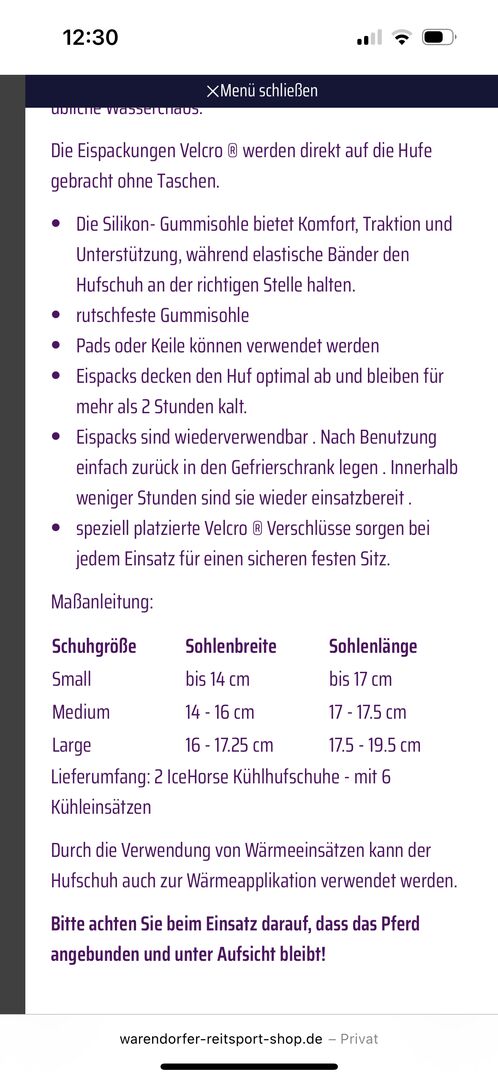 De schoen is geweldig om de hoef urenlang te koelen zonder hem zacht te maken.
