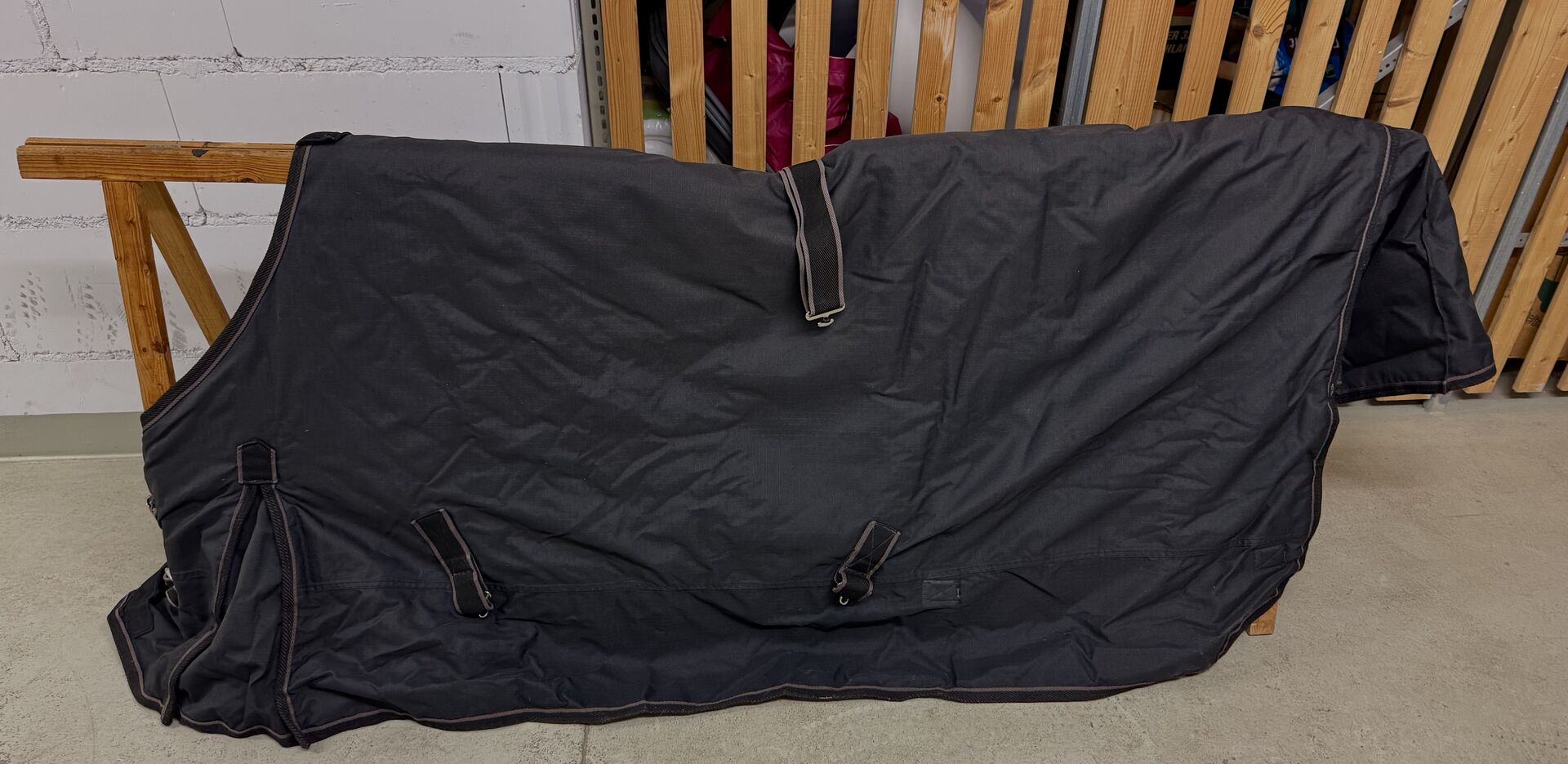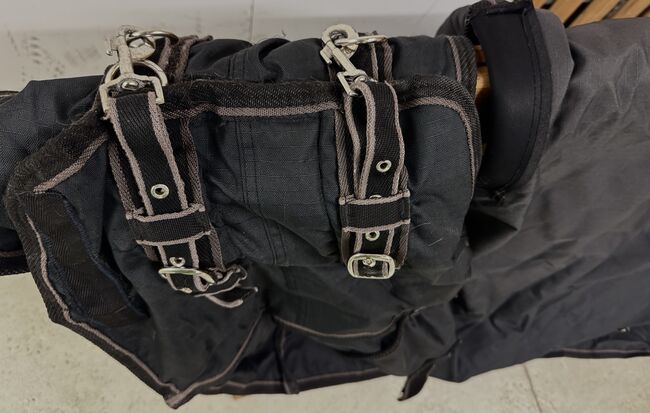 Koopje <3 Warme outdoor winterdeken, waterdicht, gereinigd, - De volgende winter komt er zeker weer aan, misschien met dit koopje? Outdoor winterdeken, waterdicht, schoongemaakt, gebruikt in goede staat. Zwart. Slechts 1 winter gebruikt. 220 gr 145 cm, Kijk maar naar de foto's (staartbescherming, plooien, singel, veel gespen,...) Professioneel gereinigd en klein vlekje aan de voorkant. NP was 99€ Rookvrij huishouden, droog opgeslagen in de kelder.