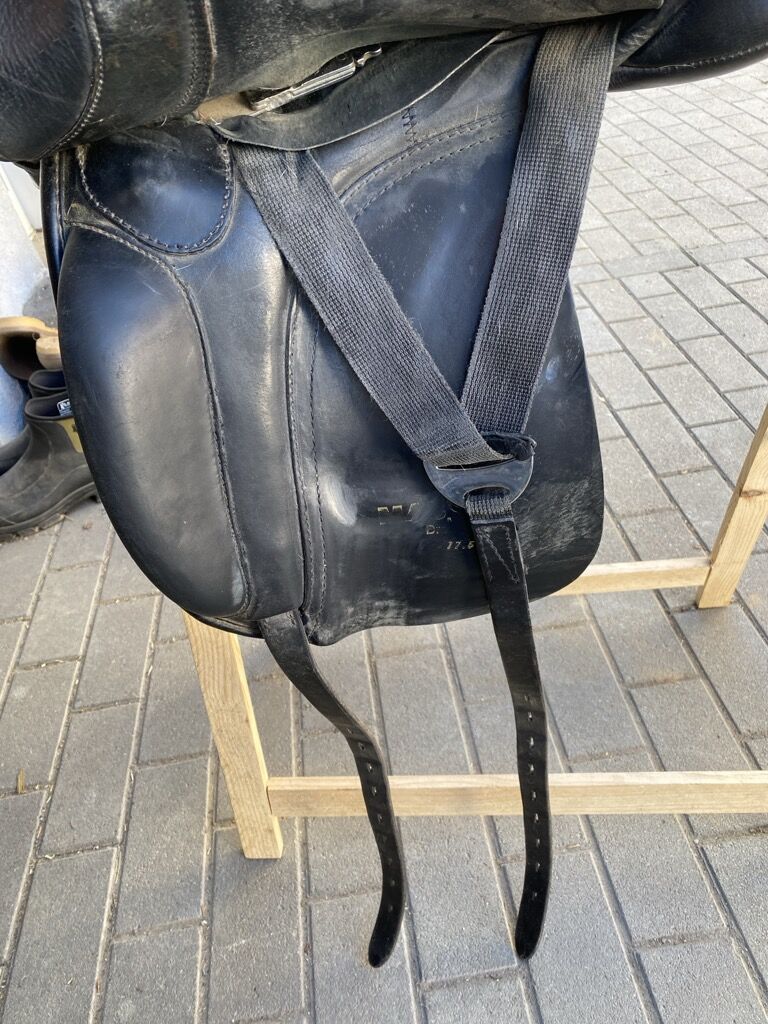 Koud bloed zadel van Massimo - Verkoop van een dressuurzadel van Massimo voor zeer brede paarden en korte paarden KW 40. Het zadel is fris opgevuld maar past niet perfect op ons koudbloedpaard.