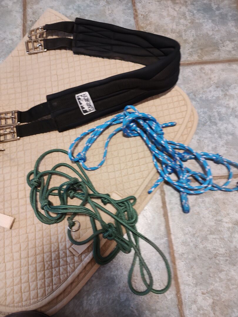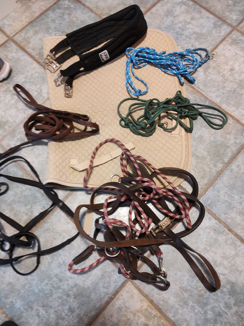 Koudbloed accessoires - Te koop is Barefoot hoofdstel Syringa incl. teugels, Eskadron lange singel 95cm, 2 knotis en div.