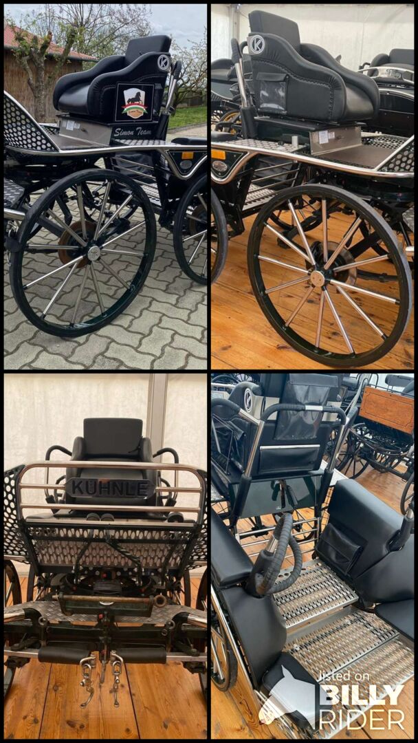 Kühnle marathonwagen voor twee paarden - Wij verkopen een Mark Kühnle tweepaards marathonwagen in nieuwstaat. Kleur: chroom/groen | schijfremmen voor en achter | draaischijfrem