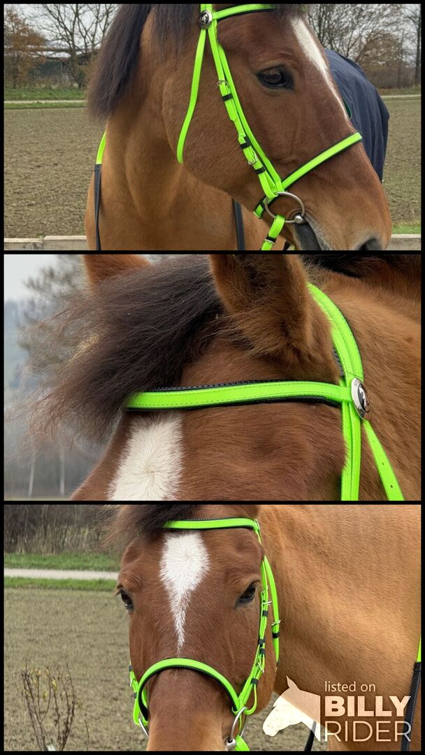 Kunststof hoofdstel NEON GROEN glanzend - Eersteklas kunststof hoofdstel neongroen glanzend Glanzend Weerbestendig Met afneembare neusriem Inclusief teugels, gedeeltelijk met rubber bekleed Dit glanzende neongroene kunststof hoofdstel is een product van het merk Super Steeds. Het hoofdstel wordt geleverd inclusief teugels en is geschikt voor alle weersomstandigheden. Het basismateriaal bestaat uit een scheurvast textielmateriaal dat omwikkeld is met plastic. Dit is een goedkoop alternatief voor hoofdstellen gemaakt van origineel Amerikaans Biothane.