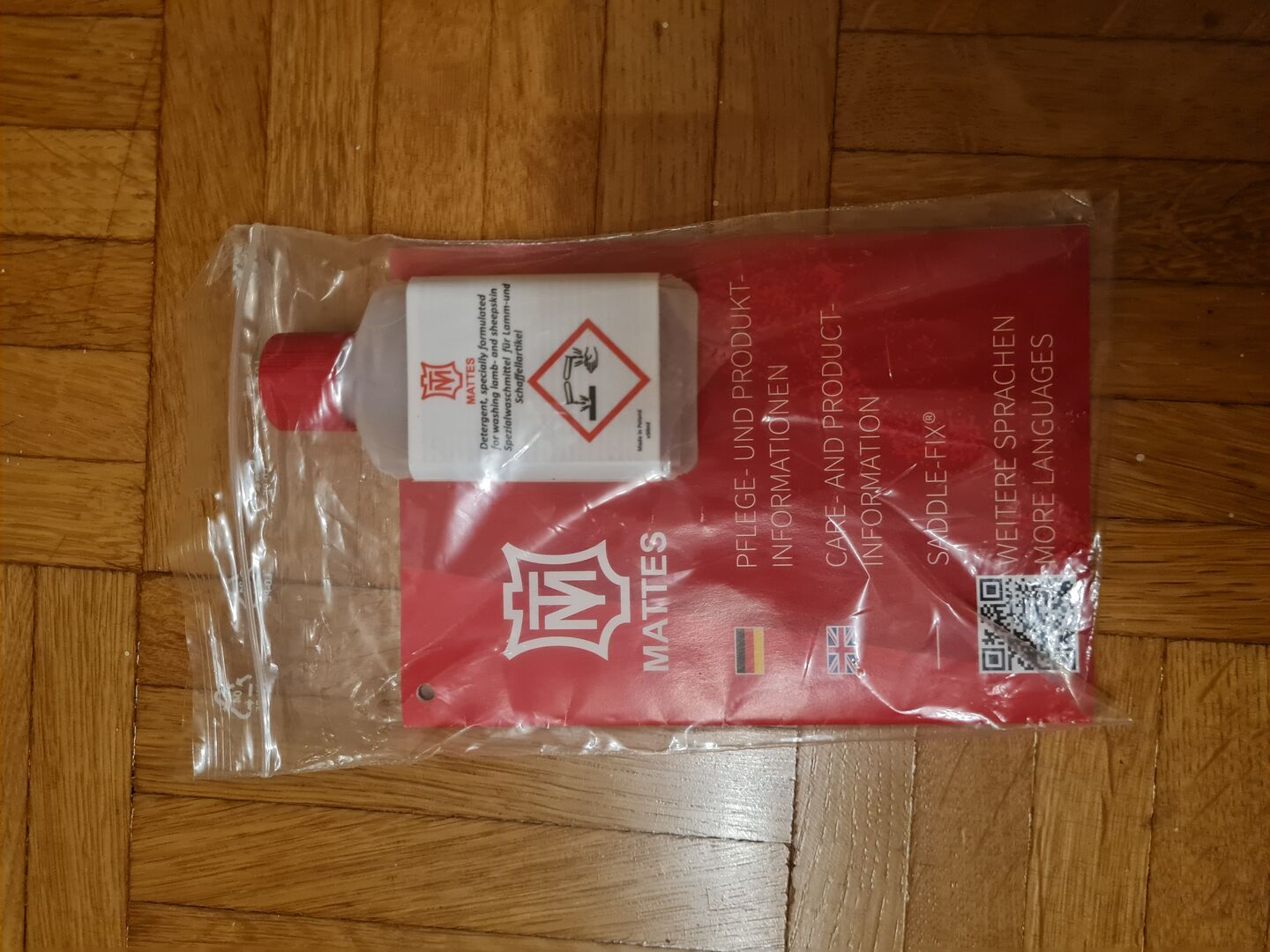 Dit zadel is regelmatig ingevet en in oktober 2024 is de kamerbreedte strakker gemaakt en opgevuld. Tegelijkertijd heb ik bij Mattes een lamsvel zadeldek op maat laten maken dat precies onder het zadel past. De nieuwprijs was toen ruim €200. Ik heb dit en het zadel gebruikt tot juni 2025 en sindsdien niet meer.