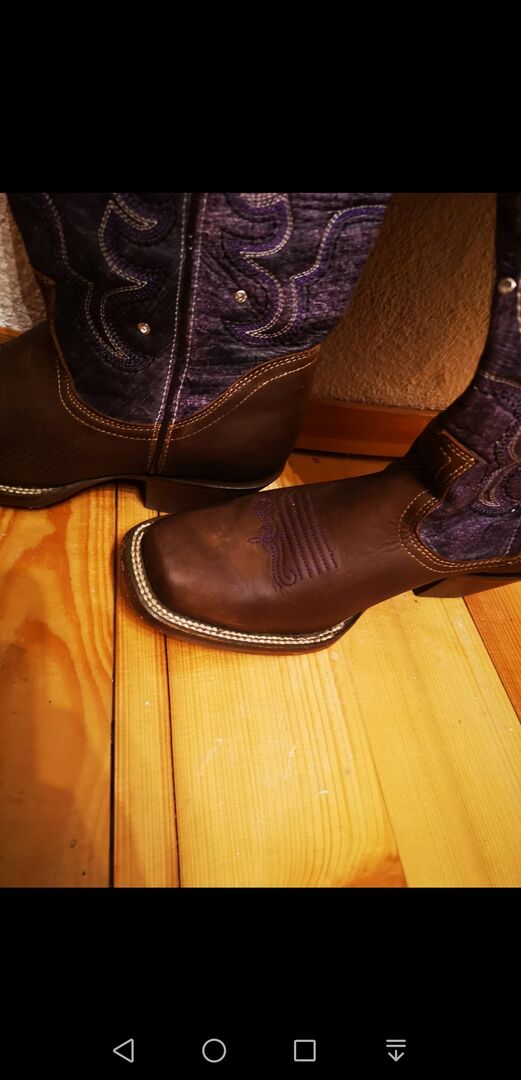 Laarzen, laars, maat 39, bruin, paars, glitter - Ik wil graag mijn laarzen weggeven, omdat ze een beetje te groot voor me zijn.