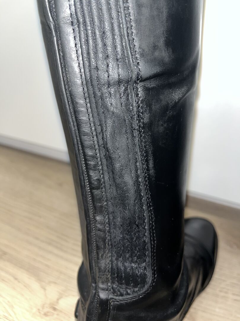 Laarzen van QHP - Ik wil graag mijn gebruikte rijlaarzen "Hailey" van QHP in maat 40 verkopen. De exacte maten zijn te zien op de foto. De laarzen zijn in goede, verzorgde staat. Alleen bij de linkerlaars laat de naad van het elastiek los (zie foto 5). De oorspronkelijke prijs was €180.