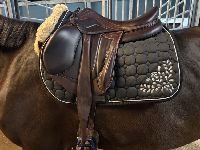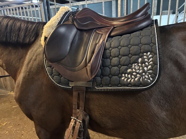 Het zadel is gemaakt in Frankrijk en overtuigt door het contactoppervlak met het paard en het bijzonder zachte, slipvaste zitcomfort. Ideaal voor ambitieuze spring- en eventingruiters. De mono flap zorgt voor super nauw contact met het paard en het zadel is super comfortabel.