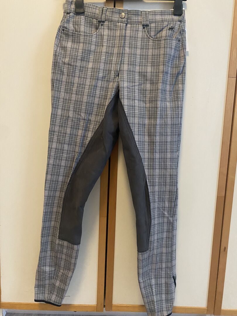 Lange maat Pikeur Rijbroek Nieuw - Lichtgrijze geruite dames rijbroek met kunstleren bies lang maat 84
