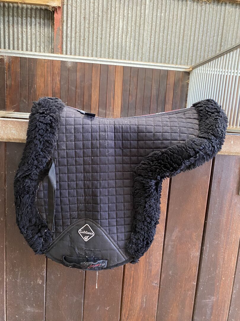 RRP £169 Well used but plenty of life still in it. The gorgeous LeMieux Merino+ Full Monty GP Numnah has soft, dense Merino wool under the weight bearing areas of the pad. The beautiful lambswool provides excellent cushioning and breathability without excessive bulk under the saddle. Full rolled edges except where the girth passes.