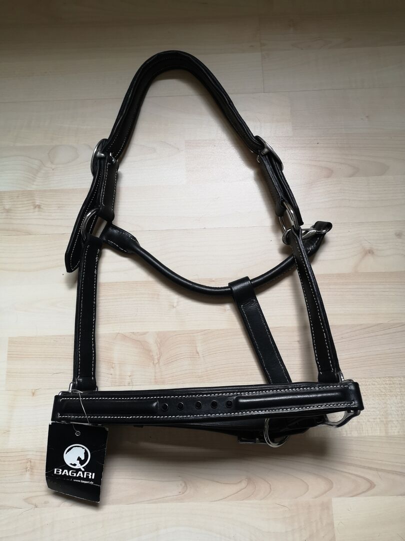 Lederen halster met strass steentjes van Bagari - Ik bied een nieuw en ongedragen leren halster met zwarte strass van Bagari aan. Het stiksel is lichtgekleurd en het beslag is zilverkleurig.