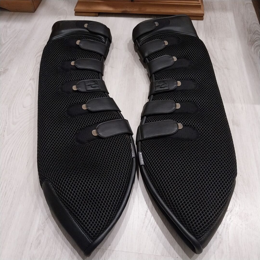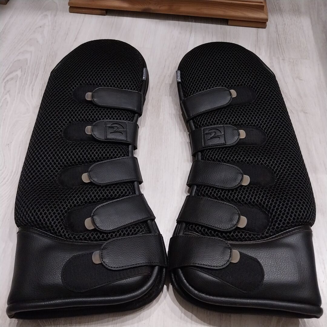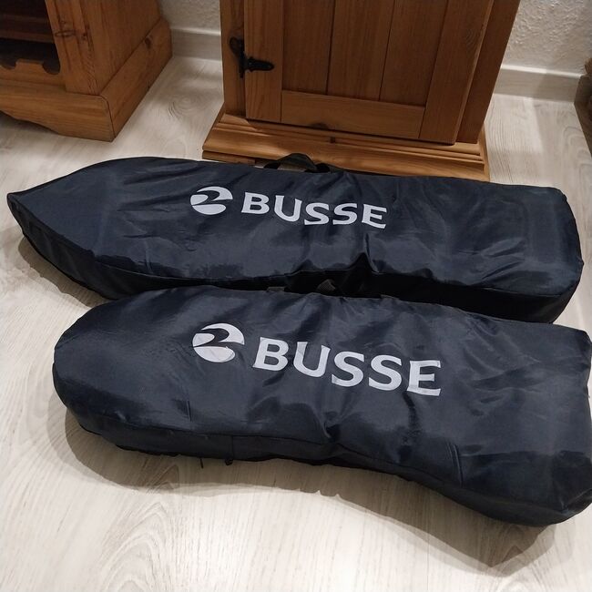 Legging transport - BUSSE transportlaarzen 3D Air Effect warmbloed voor en achter in kleur zwart. De beenkappen zijn slechts één keer gepast op het paard, maar nooit gebruikt. Daarom als nieuw. Nieuwprijs januari 2025 167,00 EUR