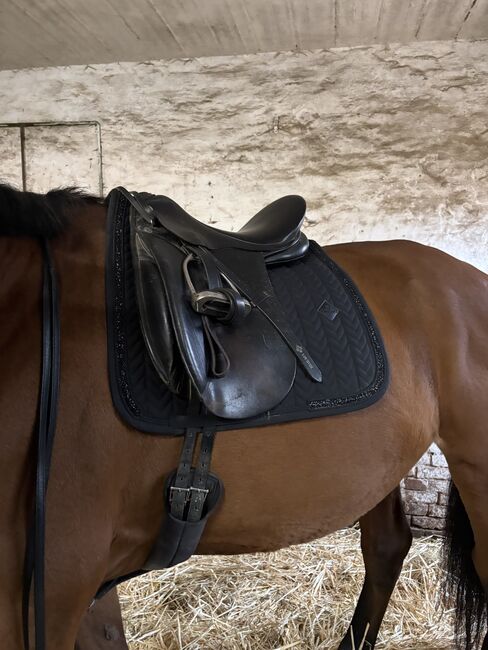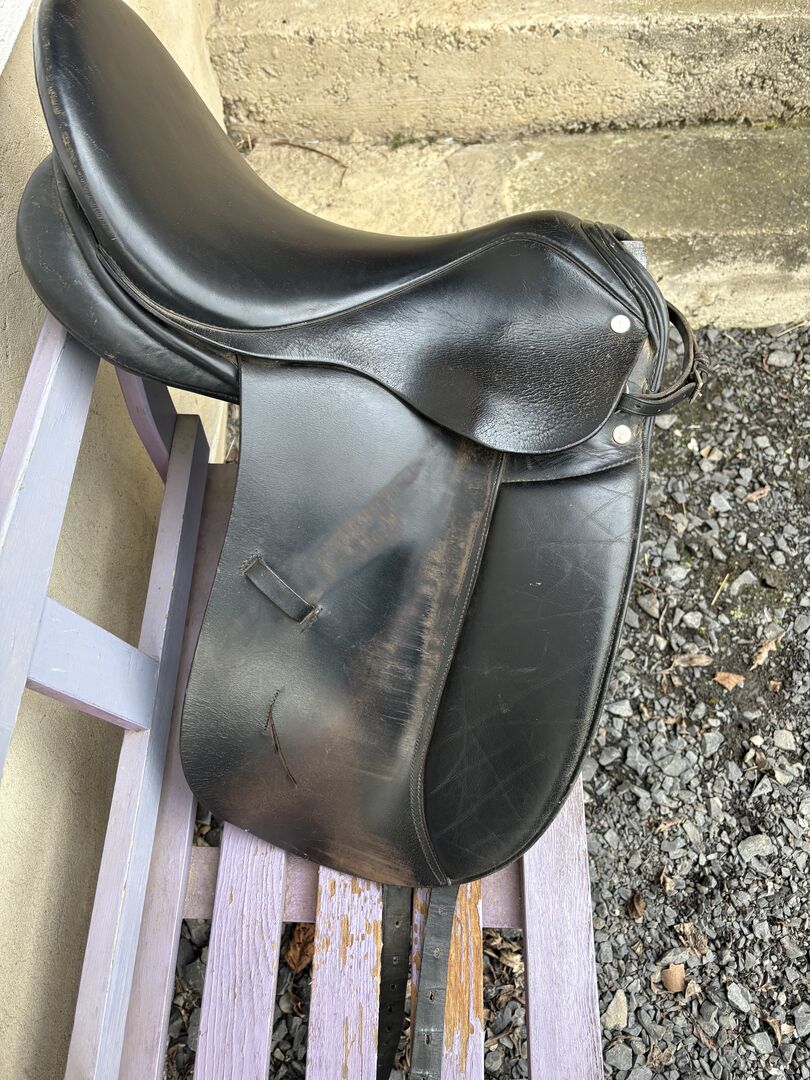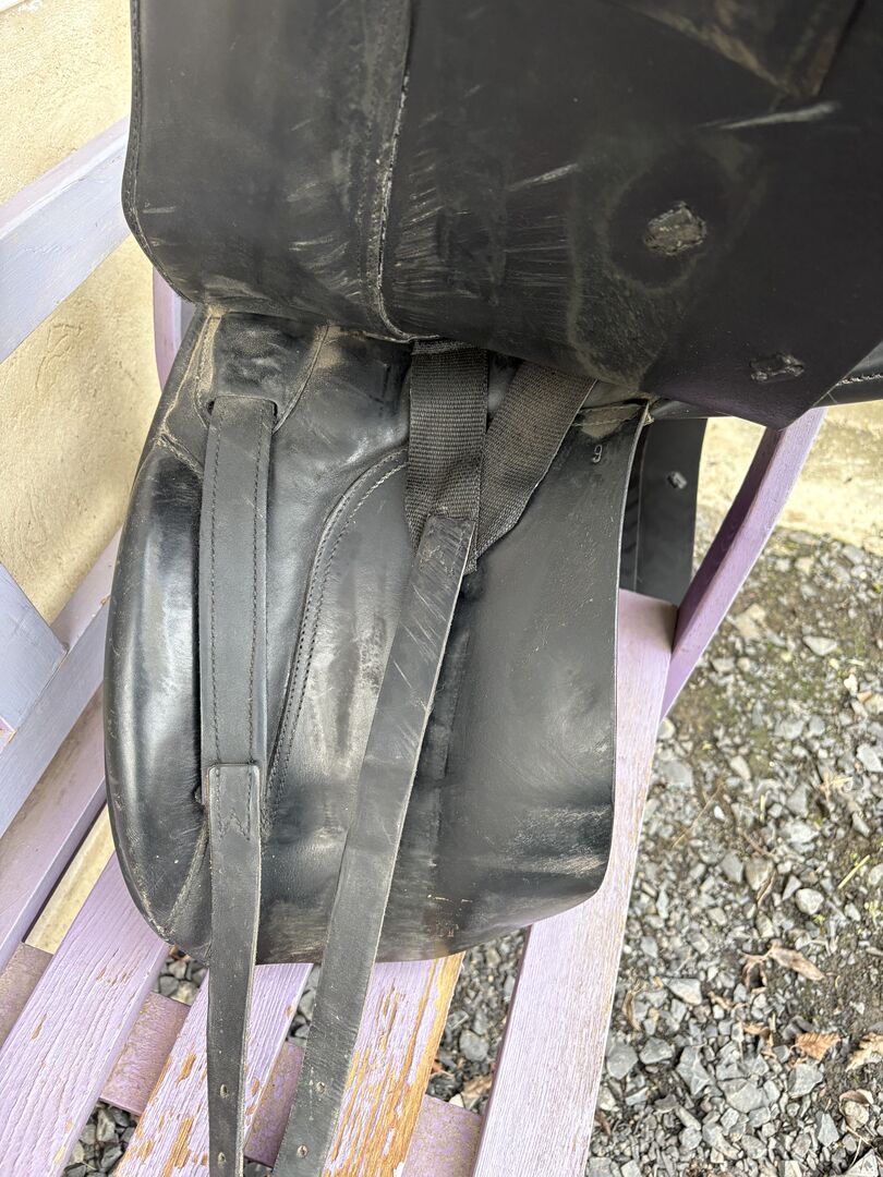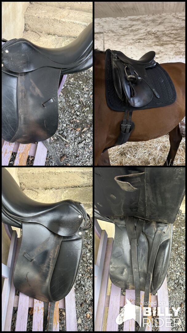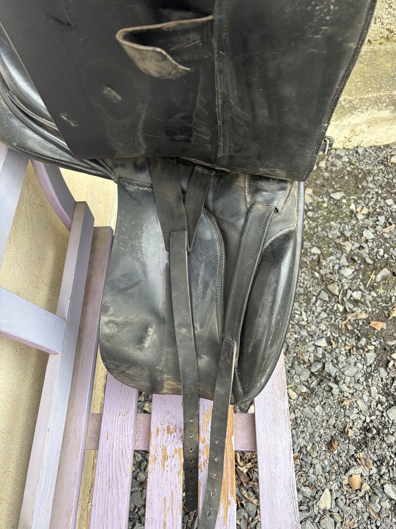 Lemetex dressuurzadel - Ik verkoop ons Lemetex dressuurzadel, het past op smallere paarden met een gemiddelde schoft. Het is goed gebruikt, het leer scheurt een beetje, maar als je het schoonmaakt begint het weer te glanzen. Ik heb het samen met het paard gekregen, dus ik kan geen precieze details geven.