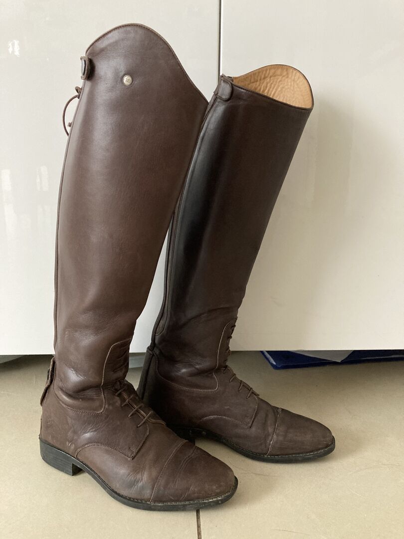 Leren rijlaarzen, maat 39 - Ik verkoop gebruikte mooie bruine leren laarzen van 4Riders in maat 39, wijdte 34, hoogte 47. Laarzen mogen ook ter plaatse worden uitgeprobeerd!