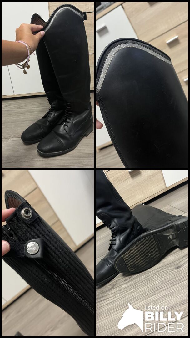 Leren rijlaarzen met glitter - De leren rijlaarzen zijn nauwelijks gebruikt omdat er niet meer mee gereden wordt, dus ze zijn in super / topconditie. Geen gebreken.
