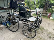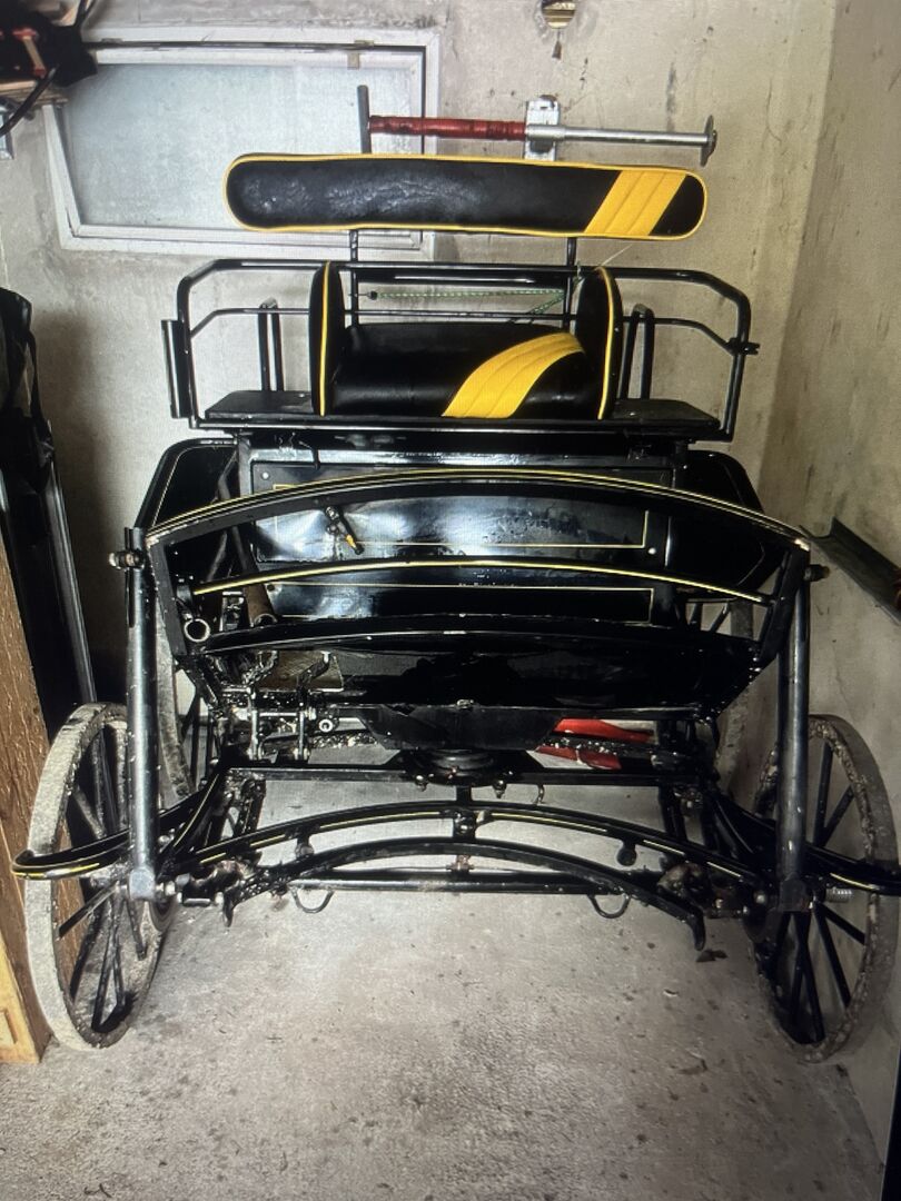 Lichtgewicht enkele slede - Ik verkoop een lichte koets omdat ik ben overgestapt op een tweepaards koets. Een verzorgersstoel is inbegrepen. Ik heb de rubberen coating van de voorbanden laten doen. De remklauwen zijn aan vervanging toe. Ik heb er in de bergen en in de hal mee gereden. Past in een paardentrailer