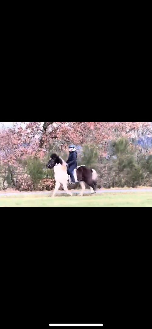 Hier komt Framtíð - een lieve kleinelt merrie die gewoon schattig, comfortabel en ongecompliceerd is! Met 1,30 m (met goede wil) is ze een van de kleinere IJslandse paarden, maar haar grote persoonlijkheid, eindeloze tölt en zachtaardige aard maken haar iets heel speciaals. En wat doet ze het liefst? Tölt - en in een continue lus! Langzaam, medium, het liefst zonder teugels - het belangrijkste is tölt! Ze is superzacht om op te zitten, een echt rugverwennend paard dat je zachtjes en ontspannen door elke rijsessie draagt. Met haar geweldige zwart-witte jasje en haar grote ster is ze niet alleen visueel een echte blikvanger, maar met haar vriendelijke, vrolijke karakter is ze ook een paard dat je meteen in je hart sluit. Waarom is Framtíð het perfecte paard voor jou?