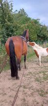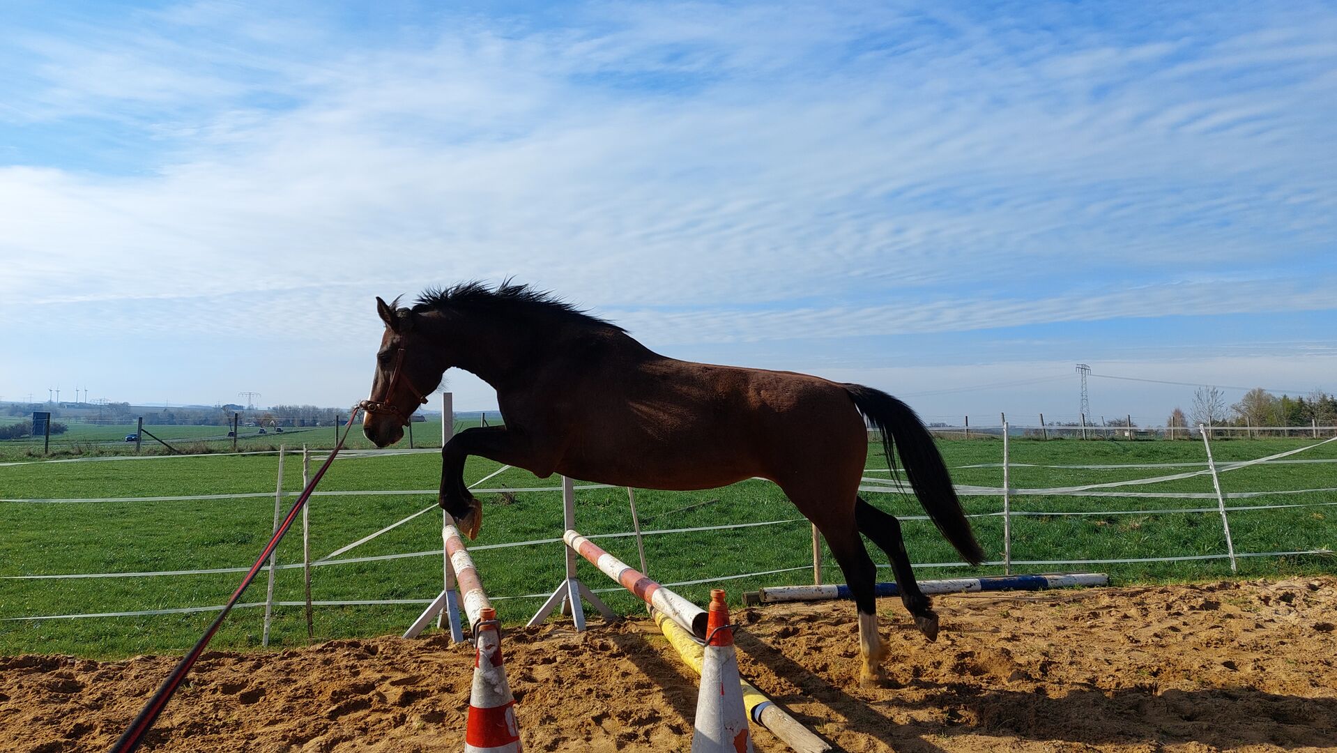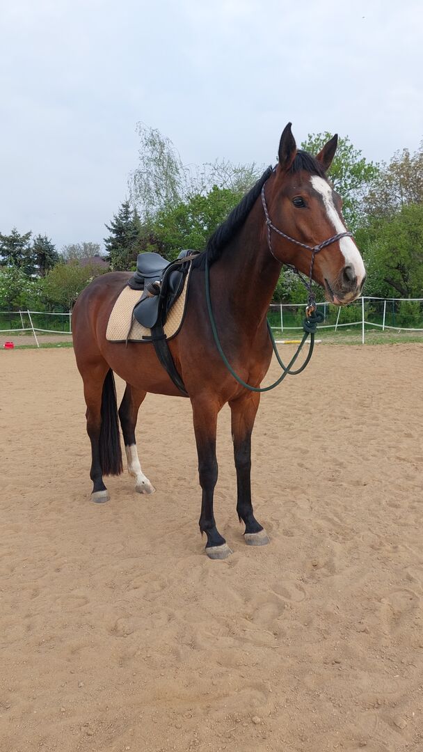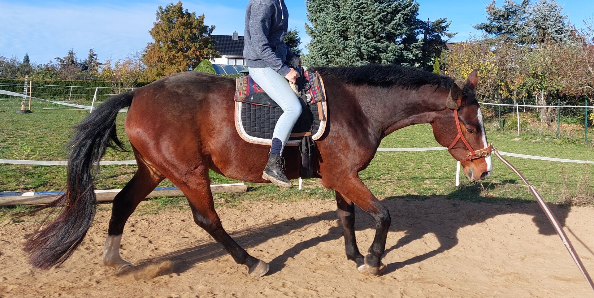Lieve merrie - De merrie is 8 jaar oud, ongeveer 164 cm groot en is bij mij geboren. Ze mocht rustig opgroeien en is met ongeveer 11 maanden voorzichtig en zelfstandig bij haar moeder gespeend.