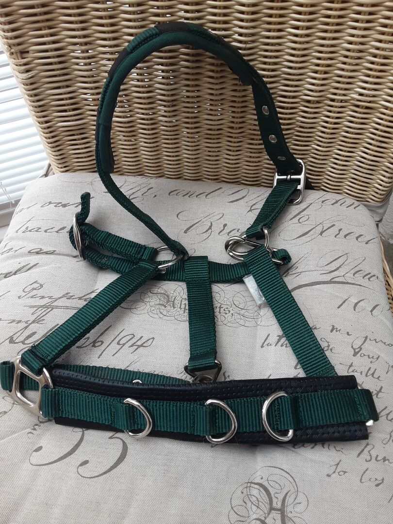longeer halster - Nieuw longeerhalster maat pony, maar past ook op fijne hoofden, ongebruikt, 1 ring verbogen, effect niet aangetast