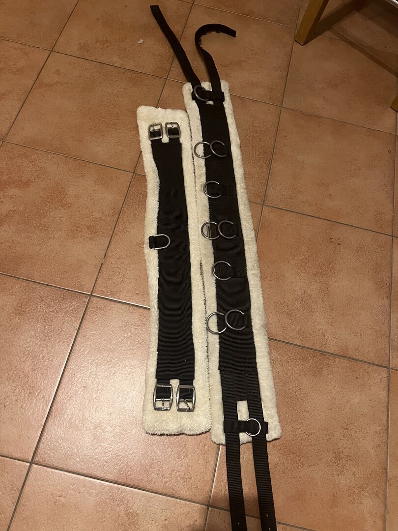 Longerende singel WB teddybont - Longsingel maat warmbloed Tekenen van slijtage op de riemen. Er is achteraf een ring aangebracht omdat de oude verloren is gegaan.