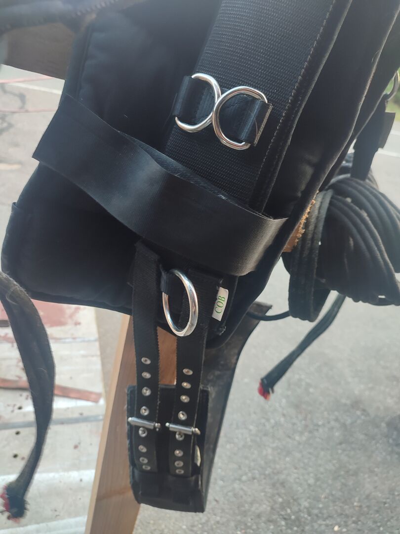 Longtuig met dubbele longe gr Cob - Zeer mooie longeersingel met zachte padding die verwijderd kan worden. Pas gewassen, helaas krijg ik het haar er niet helemaal uit. De dubbele lunge is inbegrepen Verzending zou mogelijk zijn als ik de verzendkosten betaal PayPal bij voorkeur