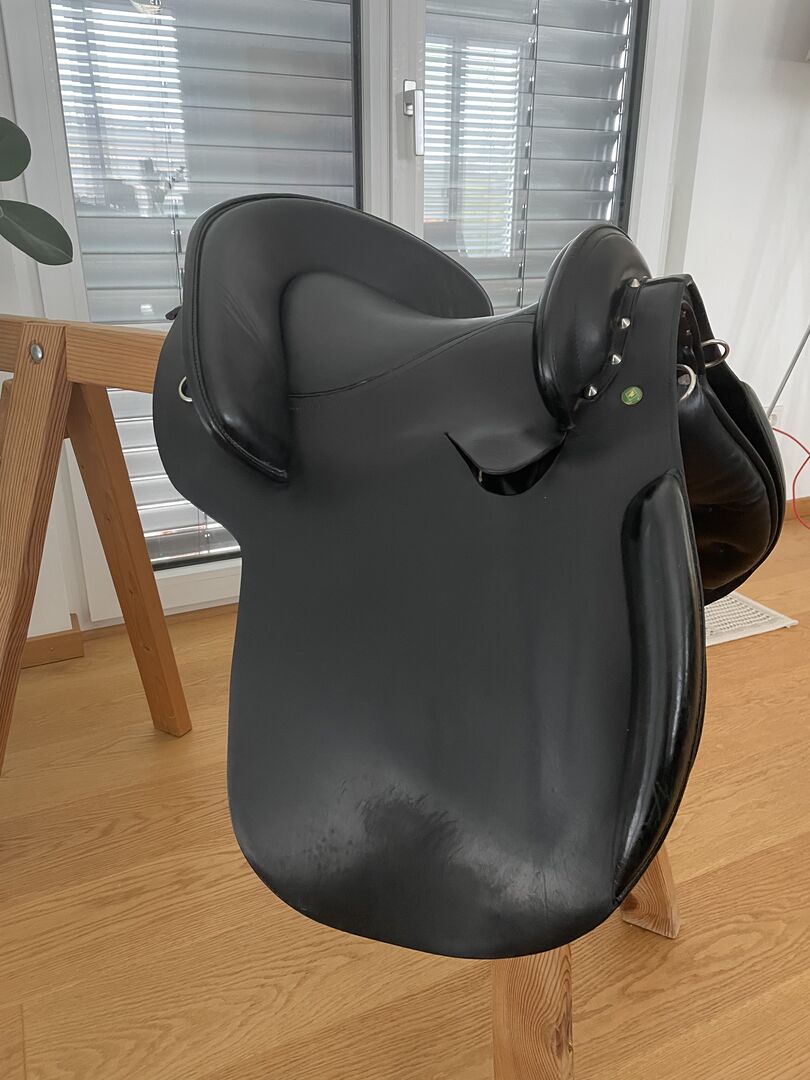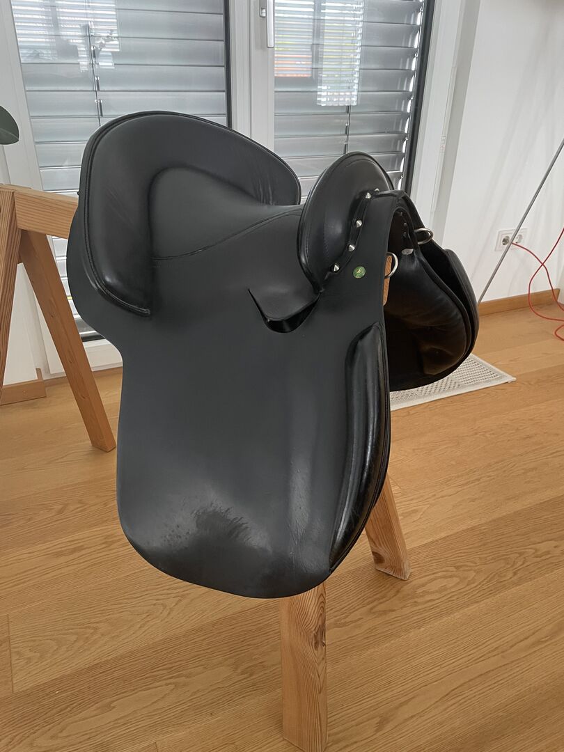 Het zadel heeft een slokdarmplaat en is ook verstelbaar door een goed uitgeruste zadelmaker. Het is eenmaal verbreed met 1 KW. Het zadel vertoont gebruikssporen, wat te wijten is aan het gebruik. Het is altijd schoongemaakt en geolied.