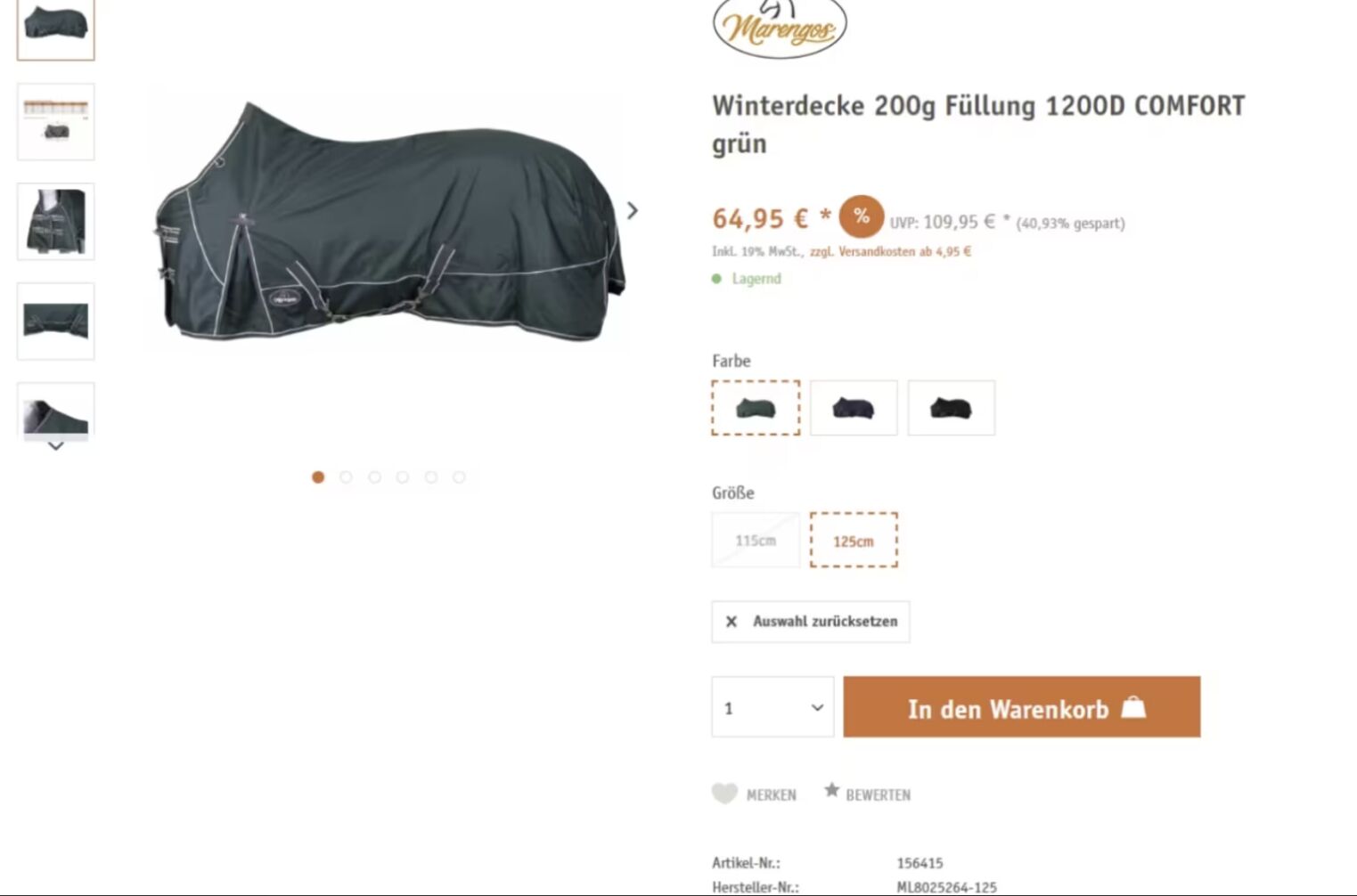 Link naar het artikel: https://www.reiterladen24.de/pferdezubehoer/pferdedecken/weidedecken-und-outdoordecken/92588/winterdecke-200g-fuellung-1200d-comfort-gruen