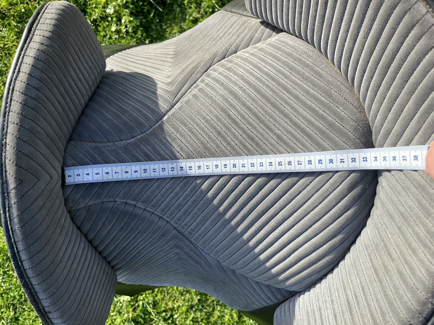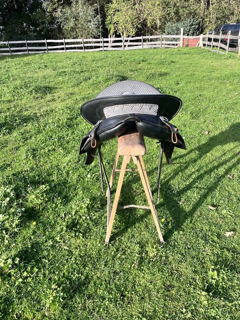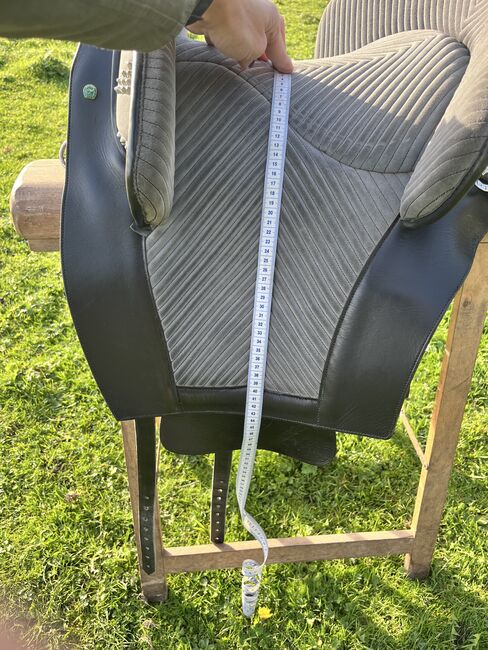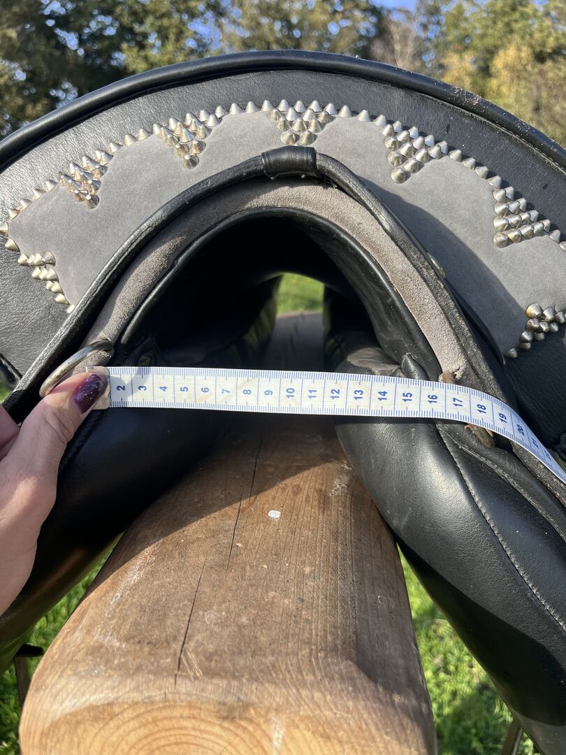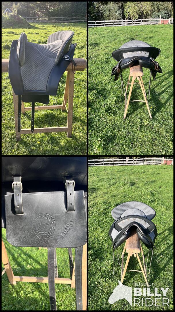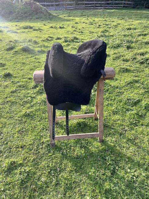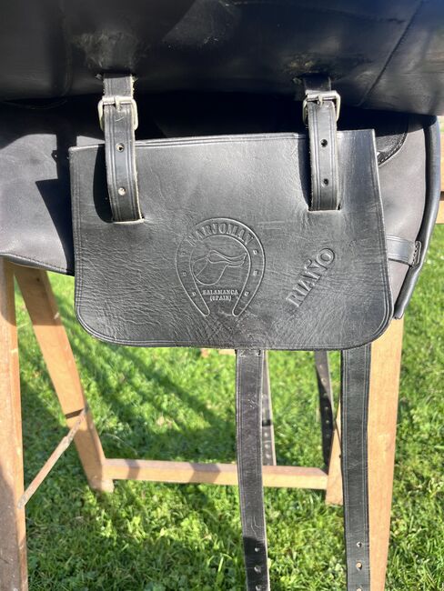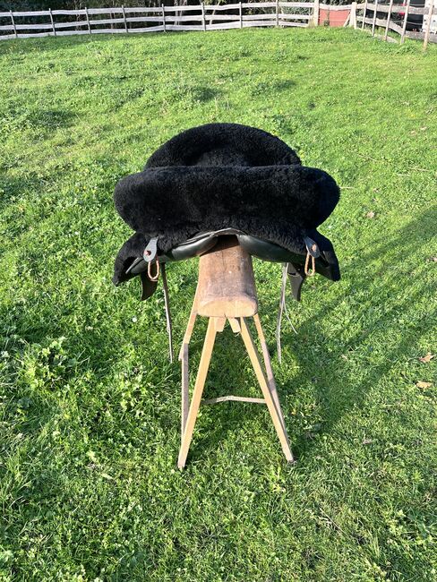 Prachtig Marjoman Riano zadel in grijs-zwart met bijpassende Zalea van schapenvacht, in zeer goede staat en zeer weinig gebruikt. Maat zitting, zie foto’s.