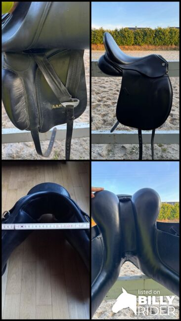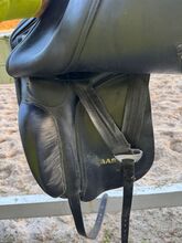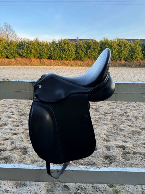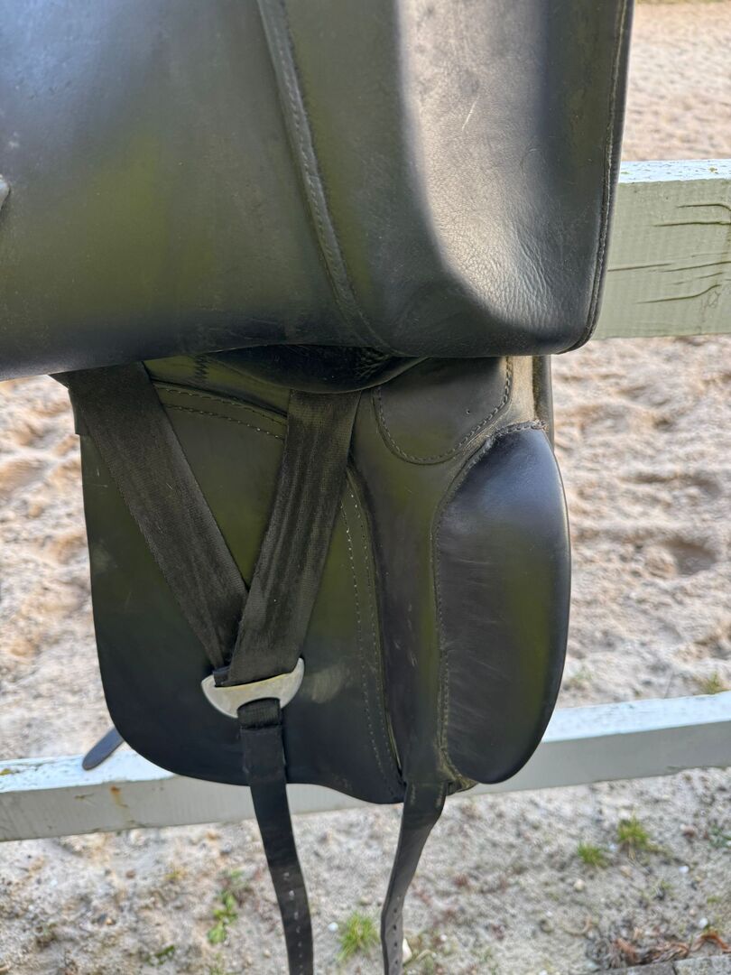 Het zadel is regelmatig onderhouden en verkeert in zeer goede staat. Het leer is soepel en vertoont slechts minimale tekenen van slijtage. Het is perfect voor ambitieuze dressuurruiters.