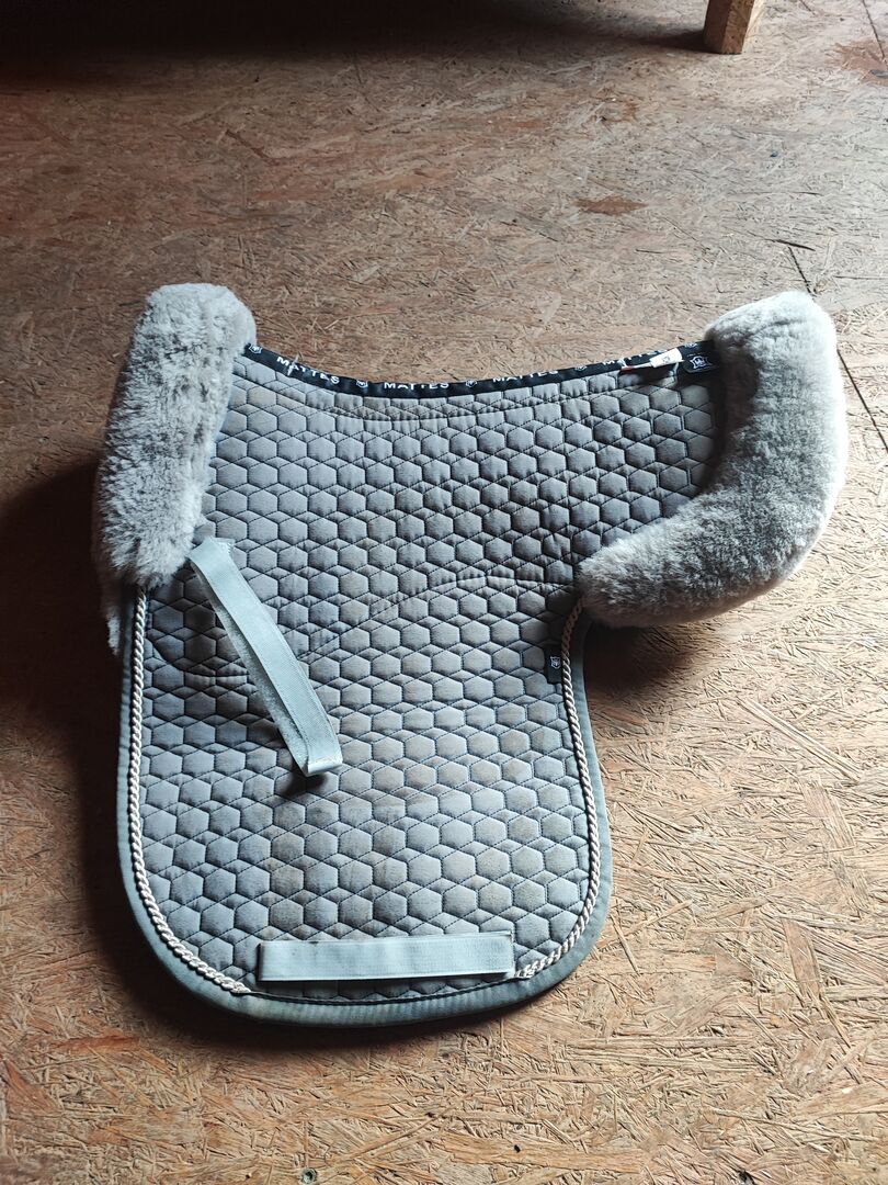 Mat lamsvel zadeldek - Nauwelijks gebruikt Mattes lamsvacht zadeldek te koop, is nog geen 5 keer op het paard geweest.