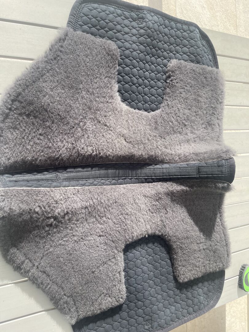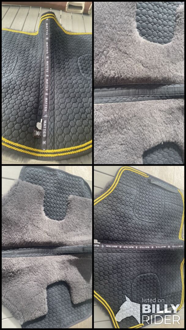 Mattes Lamsvel Zadeldekje Barok - Barok lam zadeldek in zeer goede, gebruikte staat. Donkerblauw met geel koord. Ik heb het gebruikt onder een Signum zadeldek.