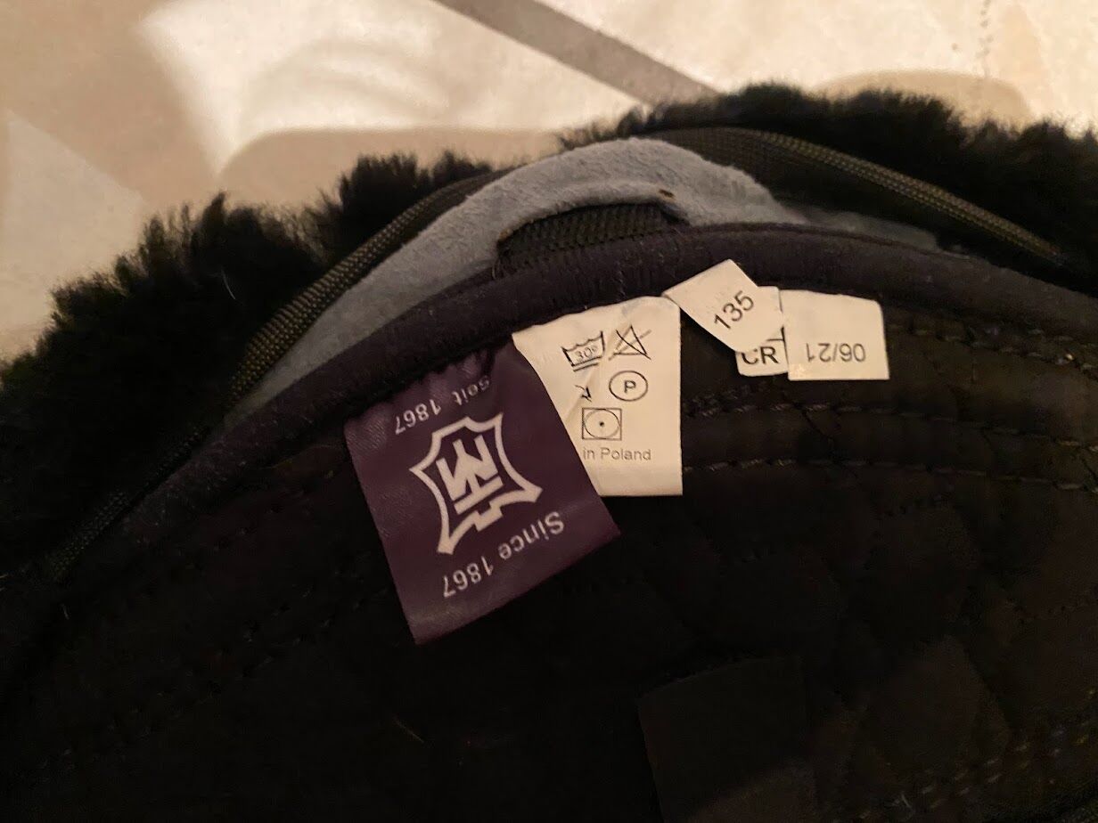 Mattes Maan lange riem 1.35m - Wij verkopen onze 1,35m lange singel die slechts een paar keer is gebruikt. Hoogwaardige, maanvormige lange singel van gewatteerde stof met afneembaar lamsvel. De voering van lamsvel geeft verlichting, voorkomt uitglijden en voorkomt schuurplekken en huidirritatie. De speciale vorm is voor ronde paarden met een nauwelijks uitgesproken singel. Met zelfsluitende rolgespen, elastiek aan beide zijden en ring voor hulpteugels. Onderhouds- en productinformatie en speciaal wasmiddel zijn bijgevoegd. Originele prijs ongeveer 170 €.